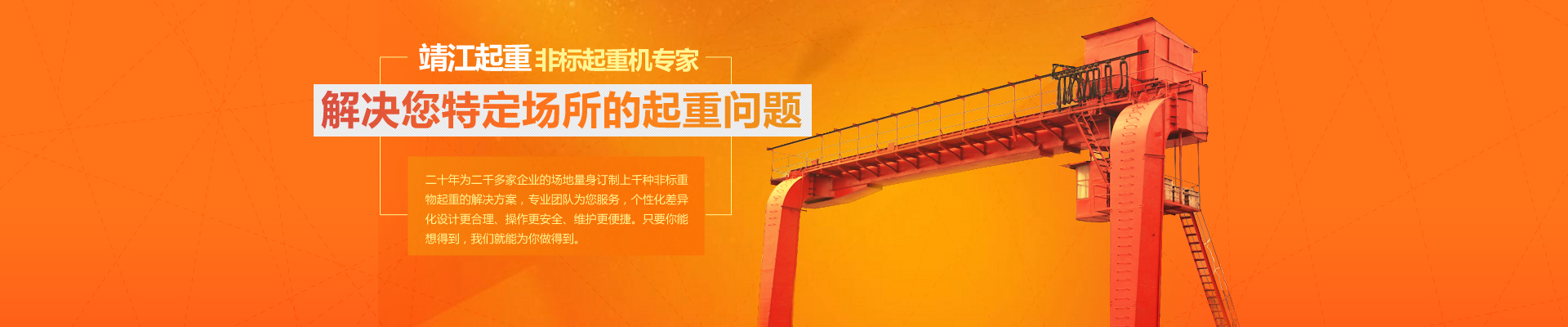20余年專注起重機研發(fā)、制造、安裝和售后服務(wù),為你量身定制,解決特定場所物料搬運問題。